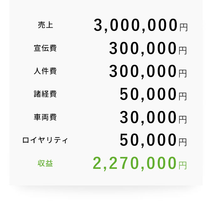 安定した収入が得られるか心配売り上げが高ければ高いほど収益率も高くなり、コストを最大限に抑えた経営戦略をミス・シャーロックがご提案していきます。