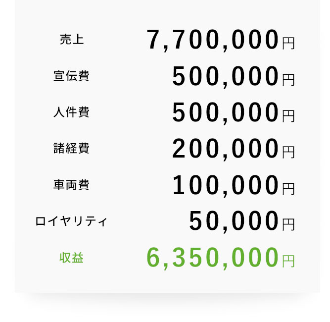 - 高い利益率と低い初期投下資本で短期間の初期投資回収を実現!